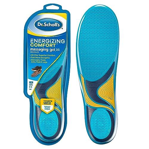 Experience all-day superior comfort and energy with Dr. Scholls Energizing Comfort Mens Everyday Insoles with Massaging Gel. Designed to relieve tired, achy feet and reduce muscle fatigue, these insoles help keep you energized throughout your day. Clinically proven to provide support in the forefoot, mid-sole, arch, and heel, they can expand the range of comfort in your shoes, especially if you suffer from foot discomfort. The patented triple gel design offers maximum cushioning and shock absorption, with Massaging Gel waves that act like tiny springs to absorb impact. Ideal for any activity, these flexible, lightweight insoles fit into any shoe and can be easily trimmed to fit your shoe size.